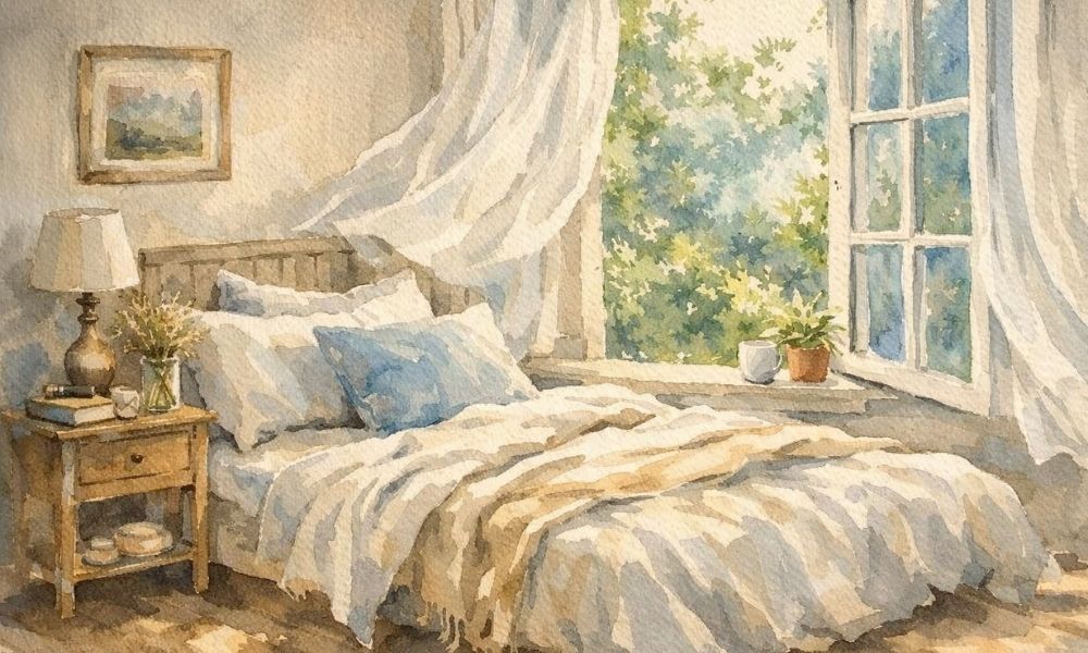 You don’t have to repaint your walls to make a change. Start with your bedding. Your throw pillows. Your curtains. Even one soft color swap can quiet a space instantly.