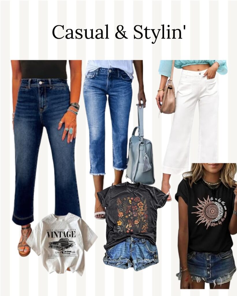 Cropped jeans paired with a fun graphic tee and sneakers is perfect for casual days. You can add a denim jacket or a lightweight shacket if you need an extra layer.