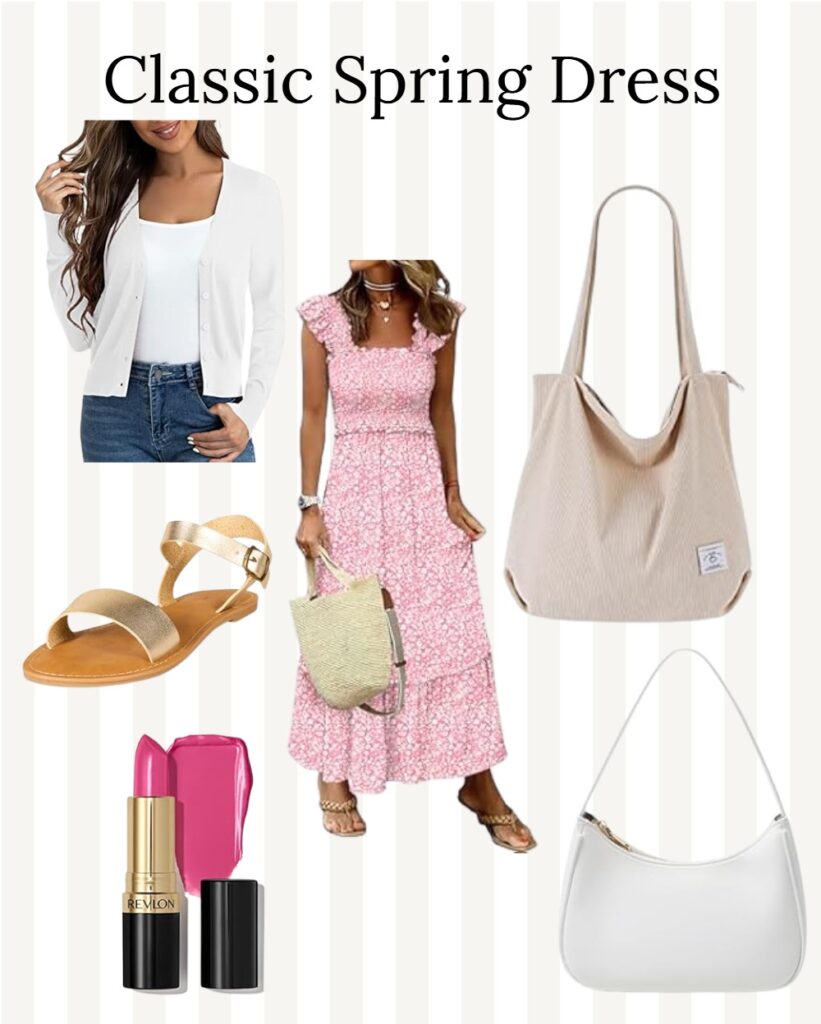 If the weather is still a little chilly in the mornings, I throw on a soft cardigan. It adds warmth without taking away from the look. This is one of my go-to spring outfit ideas for church, brunch, or even a casual date.