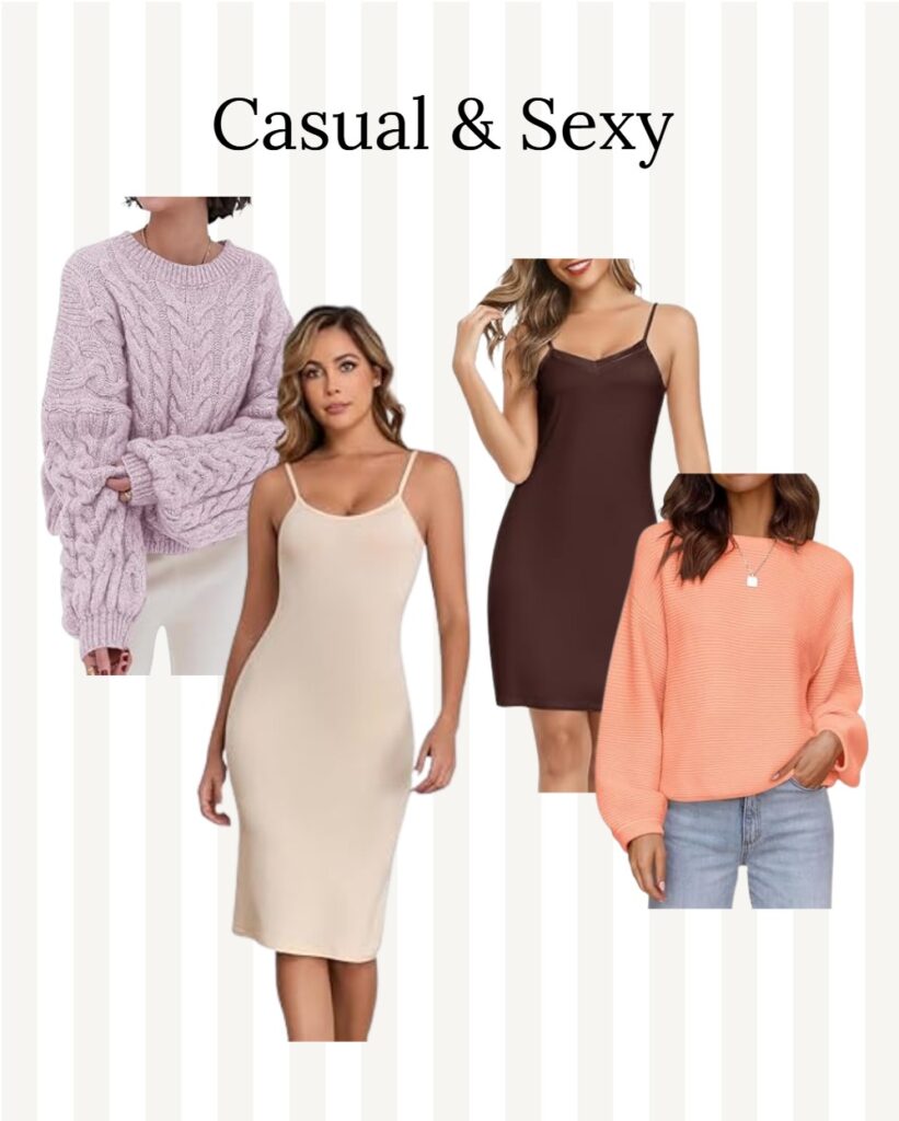 I love wearing a slip dress and throwing a lightweight sweater over it, either loosely or tied at the waist. It creates a soft, cozy look that still feels feminine and stylish.