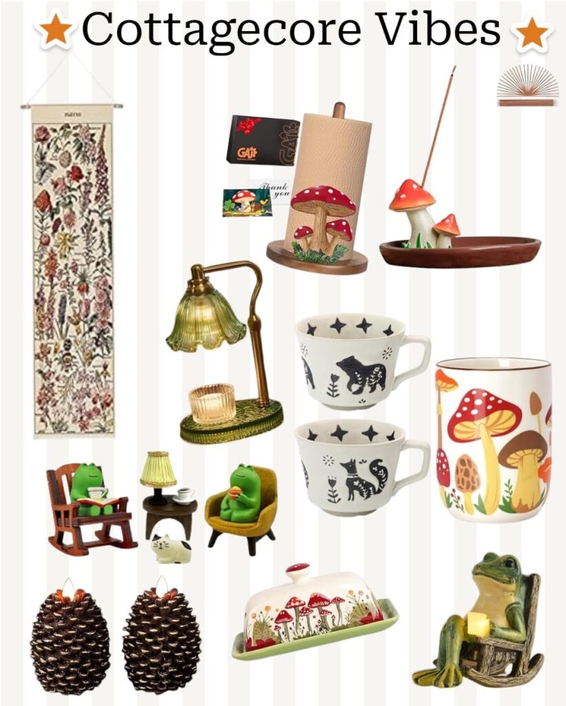 Cottagecore embraces abundance, but it should still feel calm. Display meaningful items — books, trinkets, framed photos — while leaving breathing room so the space feels restful.