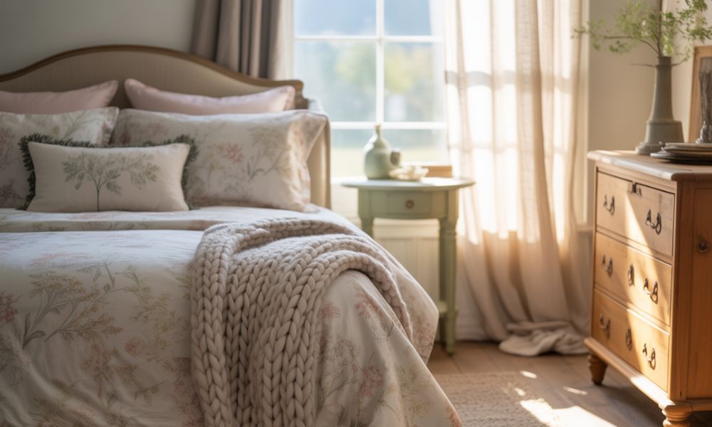 Beyond bedding, add floral or gingham patterns through pillows, curtains, or accent chairs. These classic prints feel timeless and instantly evoke cottage charm.