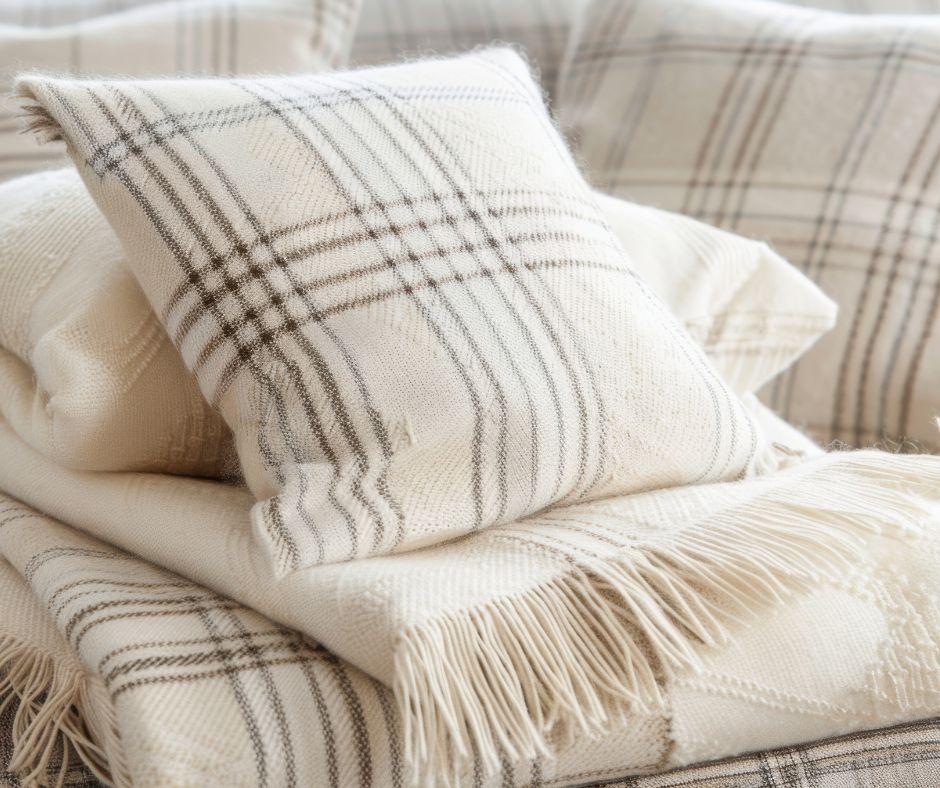 In the fall, I bring out the heavier textures—chunky knits, deep rusts, creams, and olive tones. It’s all about layers and warmth. My plaid wool throw comes out like clockwork in early October and stays through Thanksgiving.