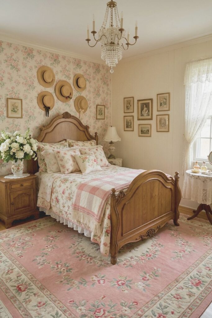Start with your bed, since it is the heart of the room. Choose floral sheets, a soft quilt, or a comforter with a vintage-inspired print. Layering is key here. Mix patterns if you want, or keep it soft and subtle.