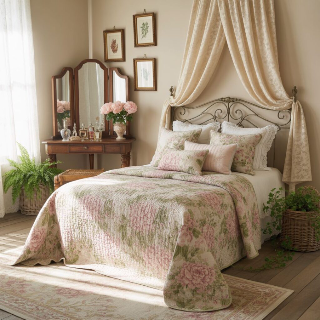 Start with your foundation. Choose warm, soft colors like creams, muted florals, sage green, dusty rose, or warm beige. Avoid stark white or overly cool tones. These softer colors instantly make a space feel more inviting.