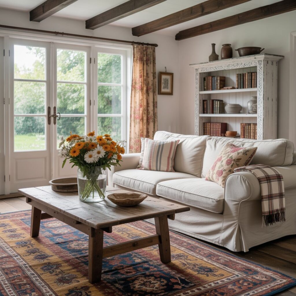 Furniture should prioritize comfort. Think cushioned sofas, wingback chairs, wooden side tables, and sturdy pieces that feel timeless. Upholstered furniture in florals, plaids, or textured fabrics fits beautifully here.